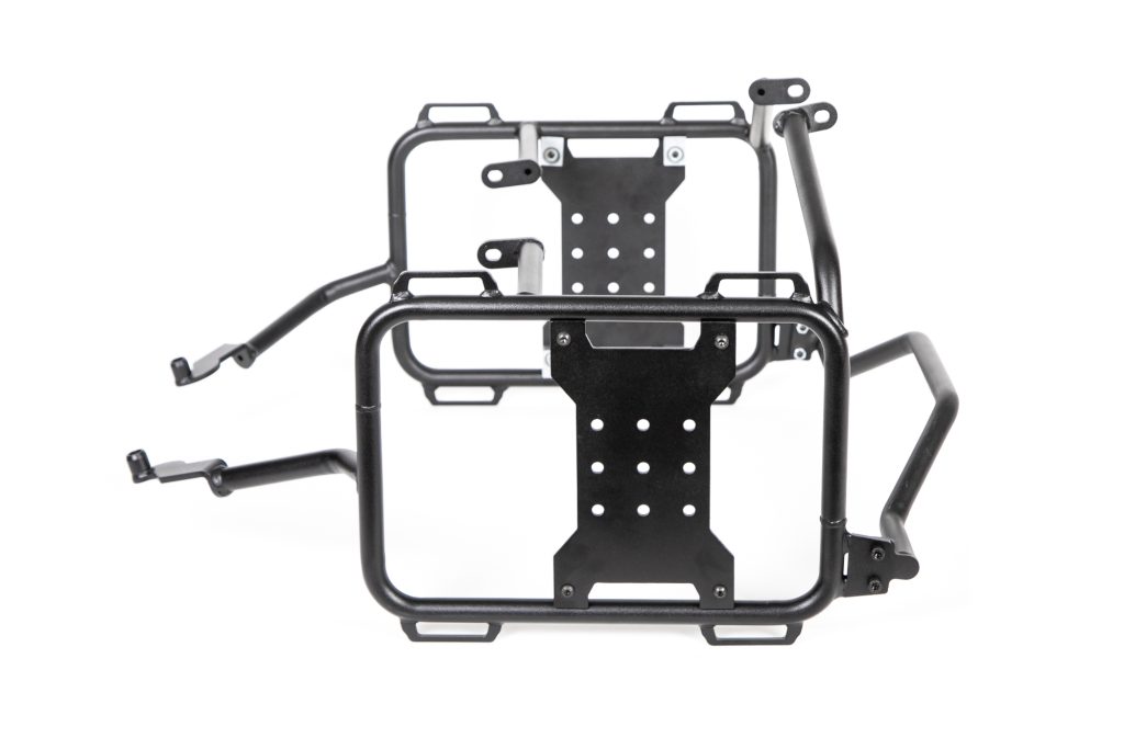 Des structures en acier doux et peinture noir mat époxy, comprenant une ferrure en forme de X en alliage, laquelle vous offrira des possibilités de montage diverses des produits Rotopax, pour une meilleure répartition du poids, ainsi que des points d’amarrage multiples. Nous pouvez même retirer le support en X de vos cadres lorsque vous utilisez des bagages rigides pour réduire le poids du cadre.