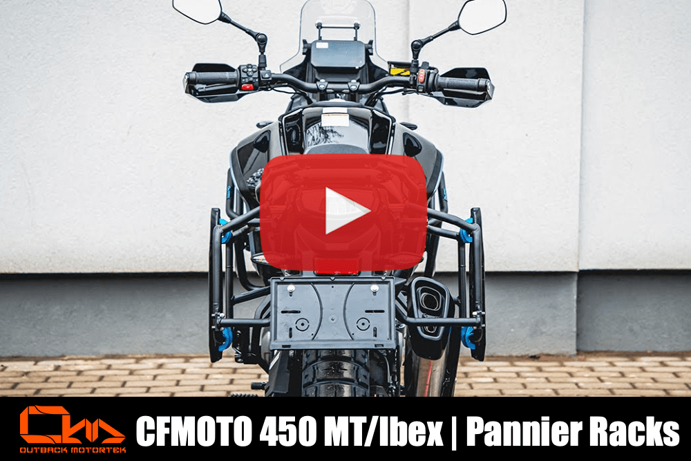 Our pannier racks are constructed of mild steel, which is what makes them robust enough to hold your luggage and absorb impact from drops and tip overs if things go south! Additionally, they have standardised dimensions [350mm (L) x 250 (H) made of 18mm diameter tubing] which gives you the option of mounting a wide range of panniers. The pannier racks for the CFMoto Ibex 450 are available with an asymmetrical design with (TBA)cm in width once installed!
